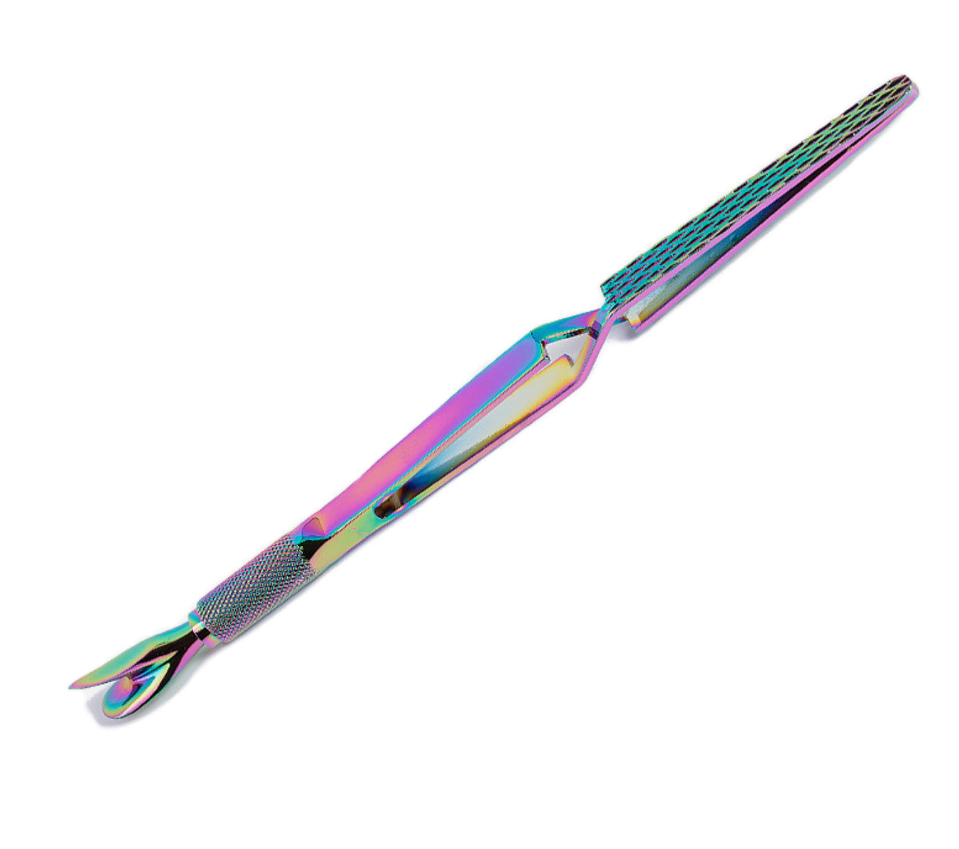 This tool is great for helping to achieve the perfect nail shape. You can use it to contour (or pinch) your nails on the sides to give them a sleeker look. For Wildflowers foundation gel products, pinch after 10-15 seconds of curing. For use with acrylic, pinch when you feel the nail get warm.