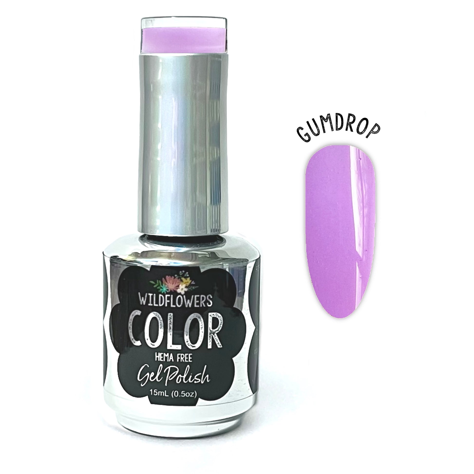 HEMA-FREE. We love this candy lilac color "Gumdrop". It's sweet, cheerful, and creamy. Wildflowers gel polish is long-lasting, soaks off quickly, and is highly pigmented requiring only 1-2 thin coats. Our gel polish is cruelty-free, vegan, and 21-free.