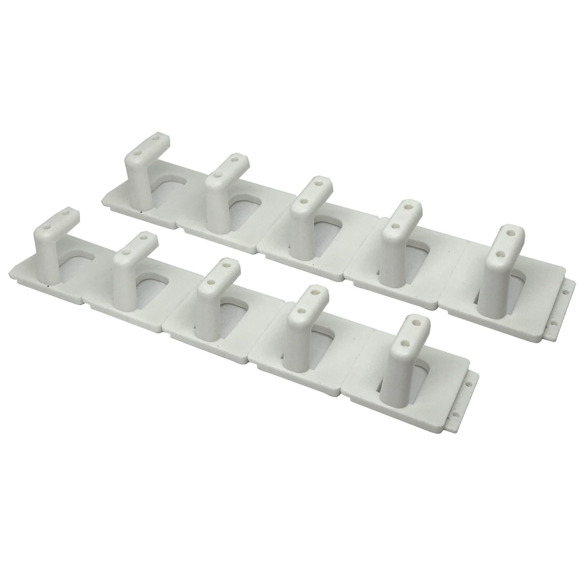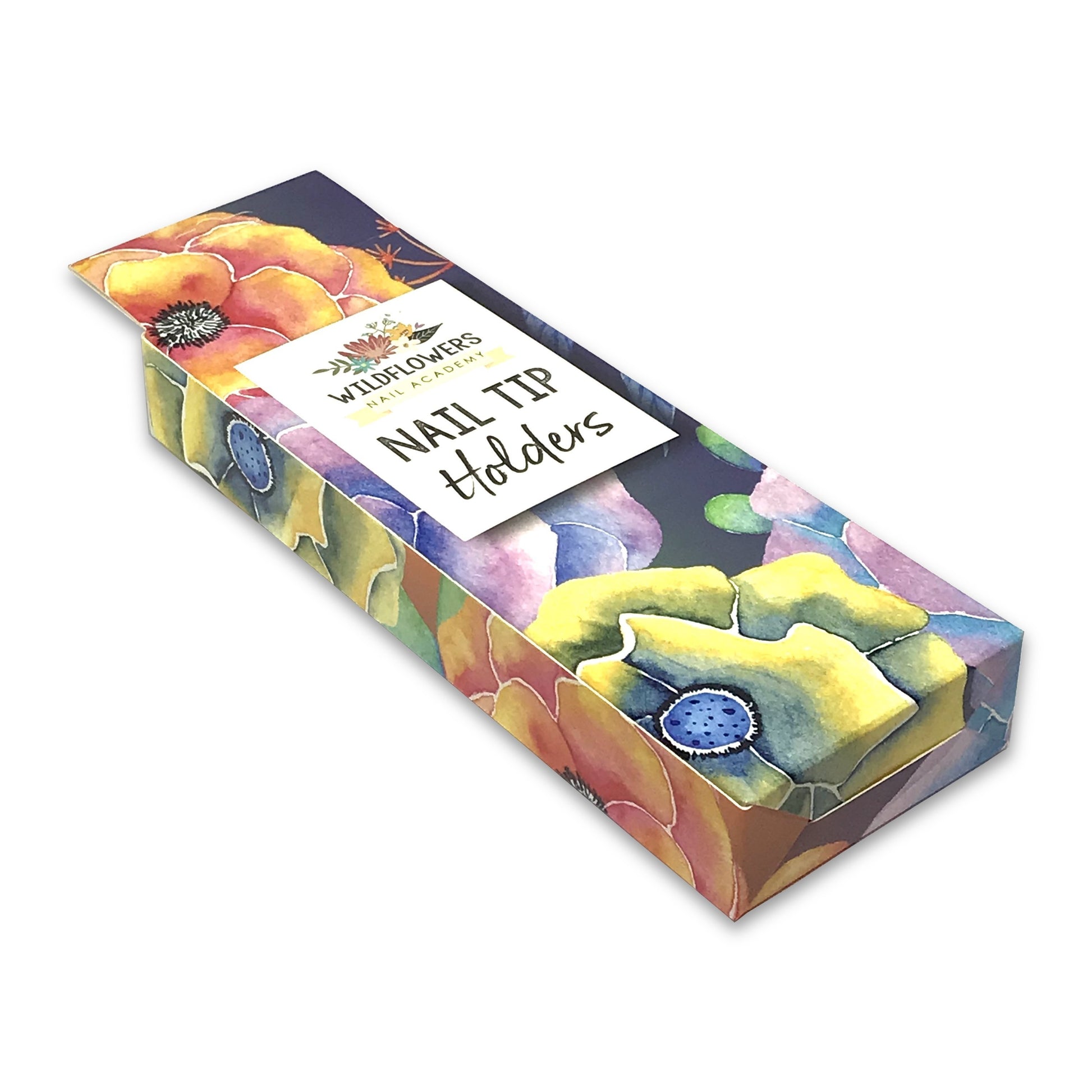 Nail Tip Holders come with 10 plastic hook-shaped platforms and 10 pop-in tips. After you've used the pop-in tips, you can apply some poster tack to the hook and hold any nail tip you'd like. The platform hooks pop together to make working easier.
