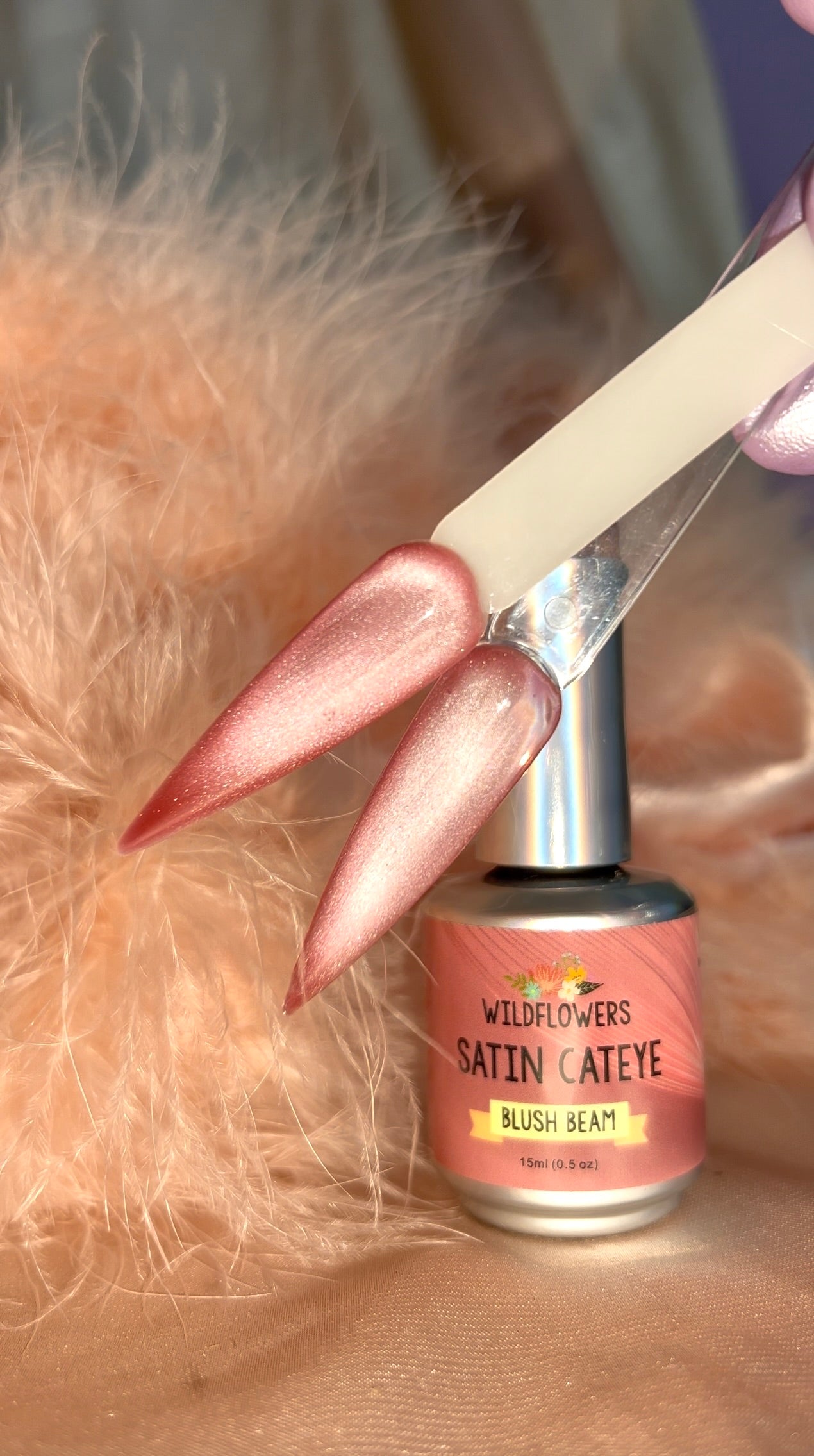 Transform Your Nails with Blush Beam by Wildflowers—A Satin Cat Eye Gel Polish.