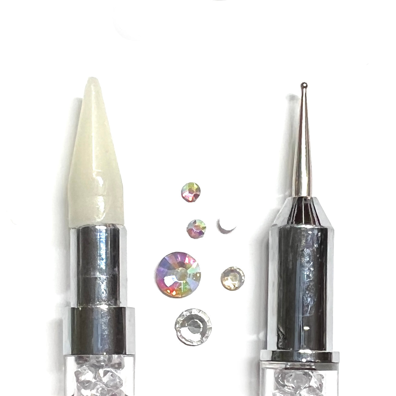 Give your clients a super fancy experience when applying crystals with our wax-tipped crystal tool. One end is a wax tip which makes picking up crystals a breeze. The other end is a small dotting tool to scoot crystals around on the nail. The wax tip screws in and is replaceable.